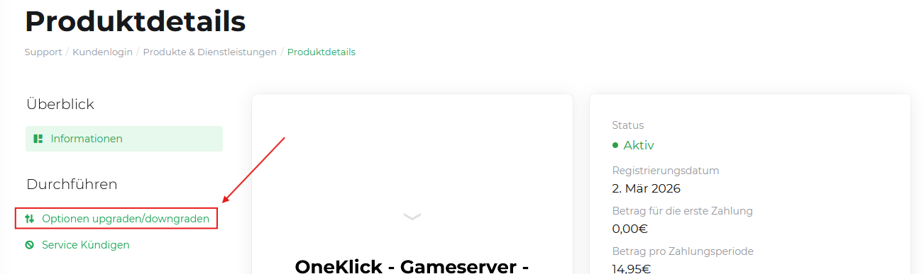 - In der linken Seitenleiste findest du den Punkt „Optionen upgraden/downgraden“