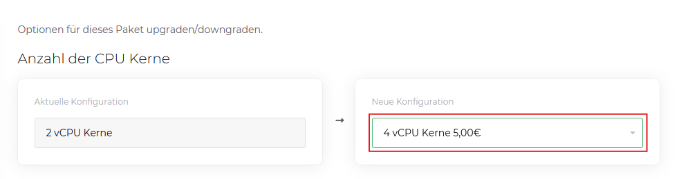 - Passe deine Wunschoption an (in diesem Beispiel: vCPU)